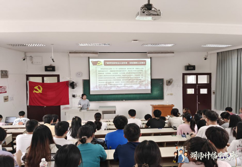 会议伊始,郭名哲同志带领大家重温入党誓词。会议第二项,交纳党费,由周钰琪同志汇报党费收缴事宜。会议第三项,由刘宇同志带领全体同志集体学习《中国共产党章程》中第八章——党的纪律检查机关。会议第四项,集中学习习近平总书记重要讲话精神,由张向阳同志带领大家学习习近平总书记在湖北武汉考察时的相关内容。会议第五项,由陈世豪同志带领大家学习《习近平谈治国理政》。会议第六项,微党课“清廉湖师,纪法同行”,张巍同志带领大家观看警示教育片《抉择》并学习了《中国共产党纪律处分条例》。会议第七项,了解师范类专业认证标准,深刻理解认证理念。