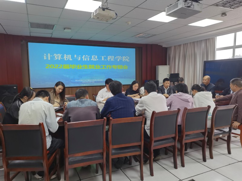 2022年5月19日下午3点,计算机与信息工程学院2022届毕业生就业工作专题会在教育大楼1715顺利举行。党委书记王舒怀、院长杨杏本出席本次会议,出席会议的还有学院相关领导、毕业班班主任、全体辅导员,会议由党委副书记柯海燕主持。