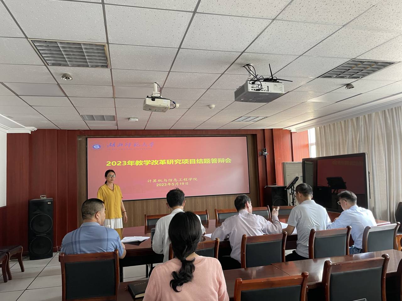 按照教务处的“关于做好2023年度教学改革研究项目结题验收工作的通知”要求,我院于2023年5月19日下午在院会议室1715,组织了2023年度的校级教研项目结题答辩活动。参加本次答辩的6位老师(邓明华、刘兴红、李全、黄琳、向丹丹和段莉莉),严格按照提交评审材料、PPT汇报、专家评审和专家评议等四个环节进行答辩。答辩结束,经专家们讨论评议,6位老师研究成果均符合验收要求,其中向丹丹老师研究成果丰硕,受到专家们的一致好评。
