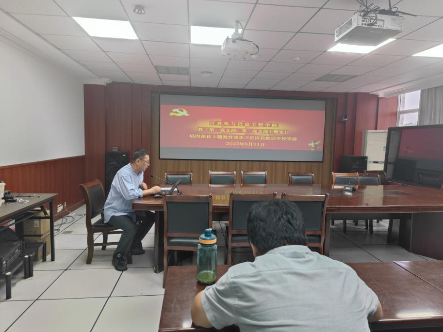 2023年9月21日下午,计算机与信息工程学院教工第一党支部和第二党支部在教育大楼1715会议室召开了九份的主题党日活动,活动主题为:巩固深化主题教育成果、立足岗位推动学校发展,计信学院教工党支部全体党员、预备党员参加了活动,活动由教工党支部第二党支部书记梁赫西同志主持。