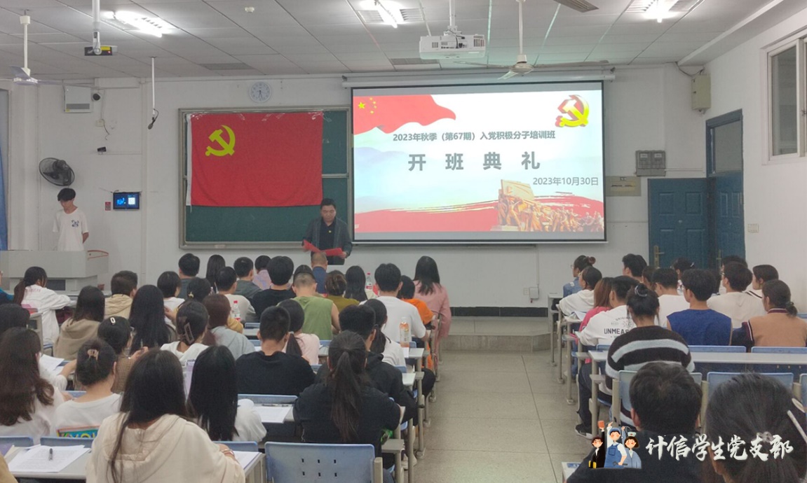 (通讯员 何飞飞 2023-10-30)为切实抓好学生党建,做好入党积极分子培养发展工作,2023年10月30日18时30分,计算机与信息工程学院学生党支部于科技大楼9406召开第六十七期入党积极分子培训班开班典礼。与会人员有计算机与信息工程学院党委书记、分党校校长王舒怀老师,校党委组织部副部长、党校副校长王新忠老师,计算机与信息工程学院党委副书记刘健老师、全体学生党支部书记、辅导员以及全体学员。