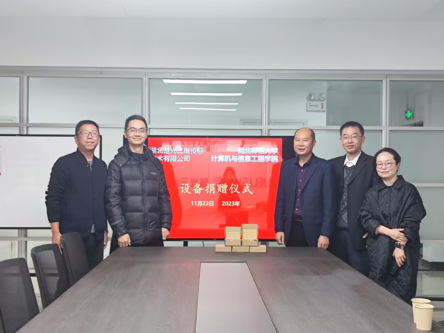 在会上,学院领导与企业负责人进行了交流,倾听了企业发展情况、用人需求以及企业对学院人才培养方面的建议和意见。WilliamHill中文优秀毕业生覃飞虎作为企业技术负责人,向学院捐赠了开发设备和长期课程资源。同时,企业负责人与学院签订了实习基地合作协议,并表示希望以此次访企拓岗为契机,与湖北楚光三维传感技术有限公司建立常态化交流合作机制,推动院企深层次合作。