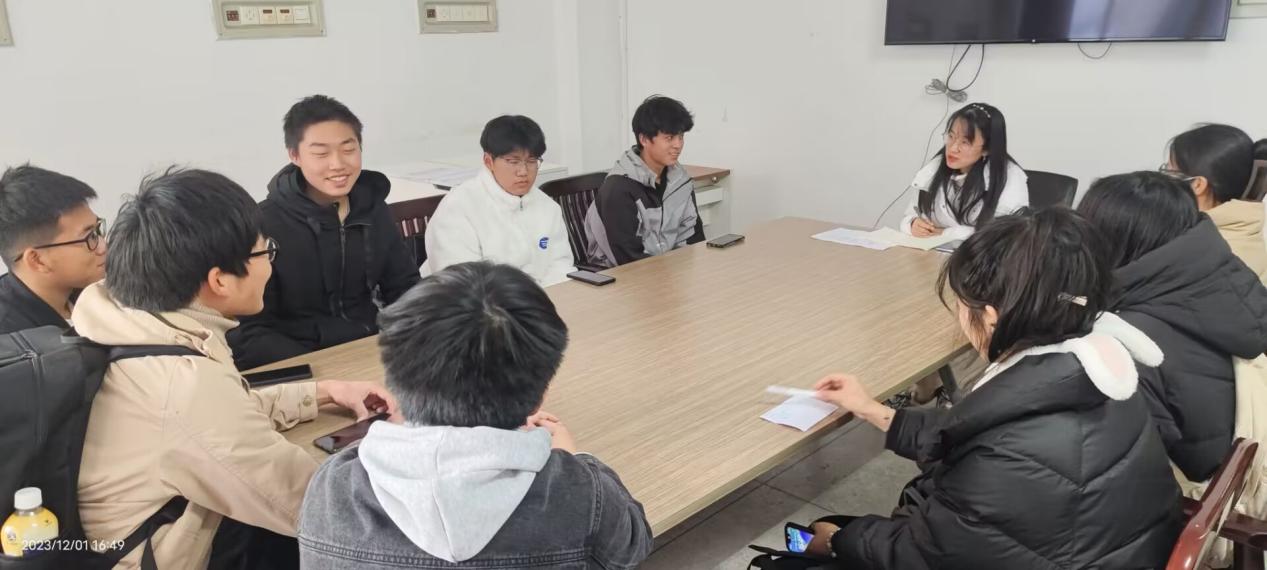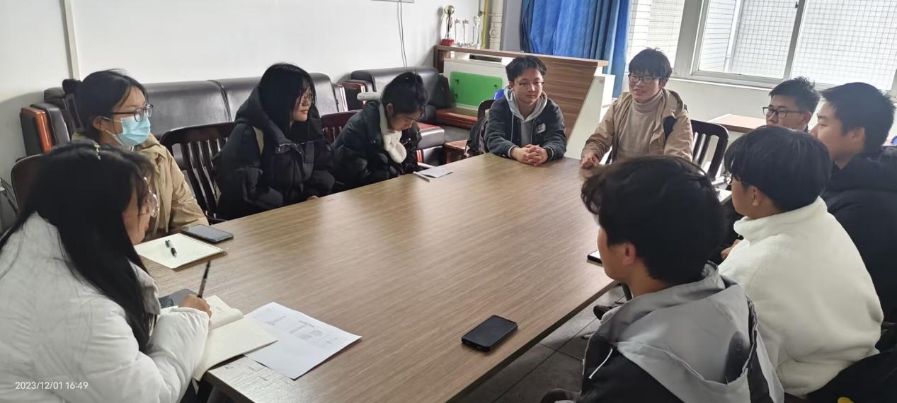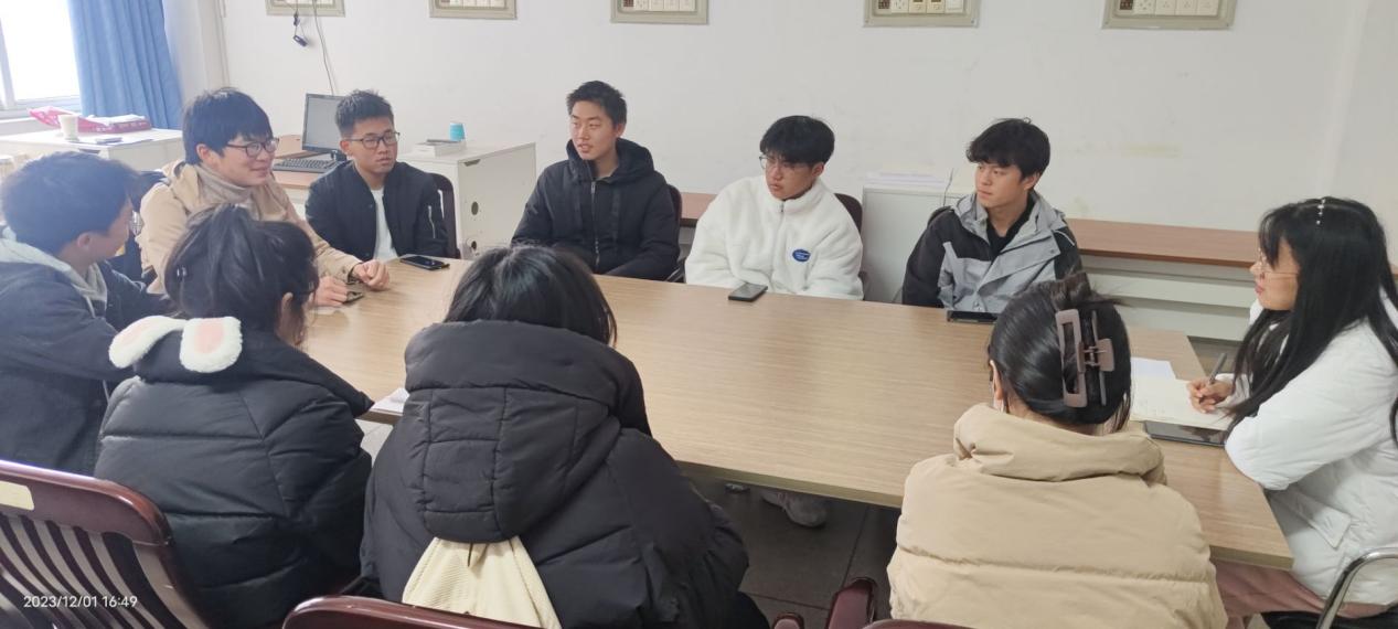 为了解新生班级近期思想和学习情况以及班级整体表现,计算机与信息工程学院于12月1日16时在教育大楼1716会议室开展班级建设调研活动。辅导员王娜老师、23D03班班级委员会成员共同参与此次活动。