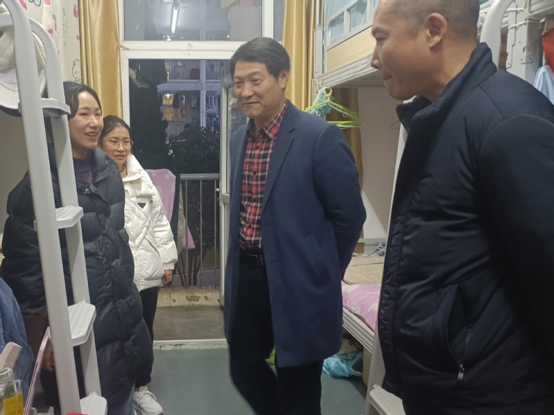 校、院领导们在学生干部的陪同下先后走访了4栋、17栋等学生宿舍,与刚刚到校的学生们进行了友好的交流。期间,校、院领导们不仅询问寝室成员的返校情况,而且还叮嘱学生们返校后尽快调整生活作息,端正学习态度,争取以最优的状态去迎接新学期的学习生活。接着,校领导及各班班主任老师深入走访学生宿舍,充分了解学生寒假学习生活安排和思想动态,鼓励同学们在新学期里认真学习专业知识,以严肃认真的态度对待新学期的学习。