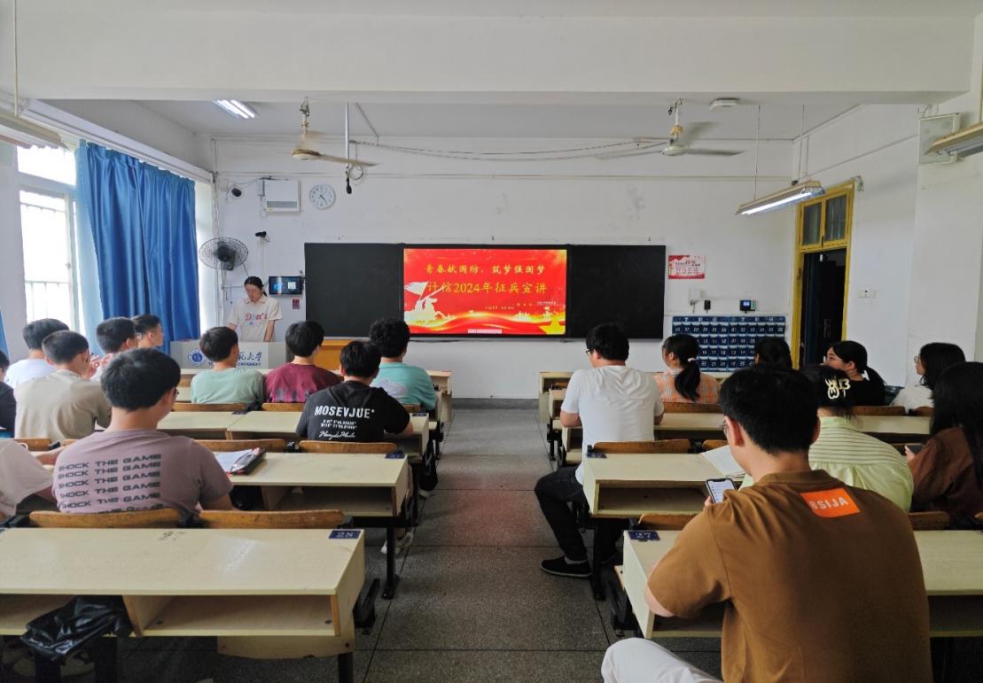 (通讯员 金小梁2024-5-22)为实现强军梦提供重要保障,激发广大青年人的爱国热情,同时帮助大家了解应征入伍的相关政策,调动学生们的参军热情,积极投身国防事业。2024年5月22日,计信学院下午在教育大楼1101举办了“青春献国防,筑梦强国路”主题宣讲会,优秀退役士兵、已考上北京军队文职、冯沁濠受邀宣讲。辅导员卢老师、优秀退役复学学生以及我院的一众学子参加宣讲会。