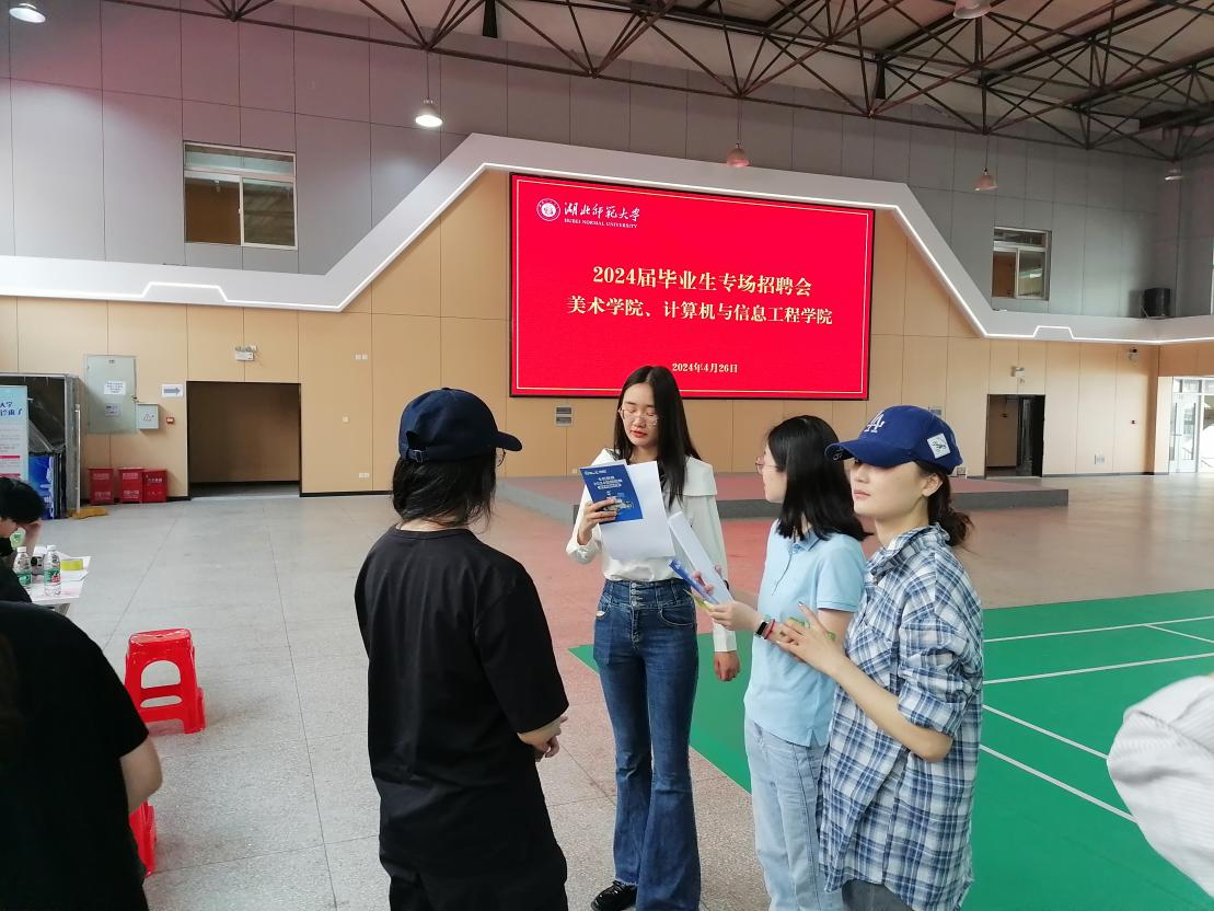 为了全面促进毕业生就业工作的高质量开展,4月26日上午,计算与信息工程学院与美术学院在若水轩3楼举行专场招聘会。招聘会在校就业指导服务中心的指导和帮助下,共有15家企业单位参加,学院本科、研究生毕业生前来应聘,招聘会现场也同步直播。