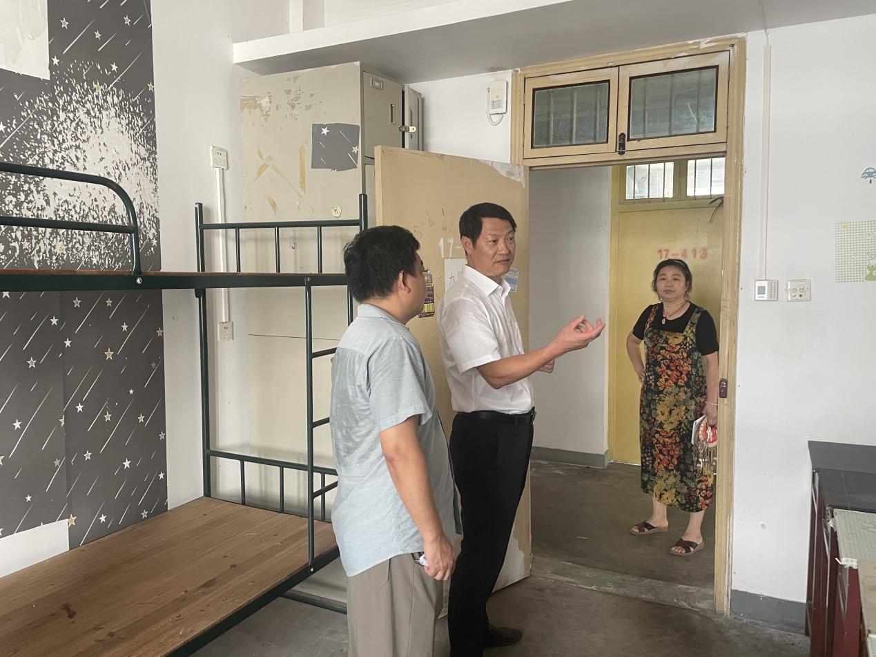 余涛细致查看了新生宿舍,对学生即将入住的宿舍布局等提出要求,余涛指出,做好学生工作首先是定位,要以立德树人、为国育人、为国育才为宗旨,要以学生为中心,要把学生当做自己的亲人去考虑,要设身处地的去为学生着想;其次是要踏实,要把宿舍的布局、卫生等在现有的有限条件下尽量做好,为新入校的学生们提供一个良好的居住环境;最后,余涛强调,要向新生解读好湖师文化,引导学生积极的去发现湖师底蕴和文化,实现“以文化人”和“以文育人”。