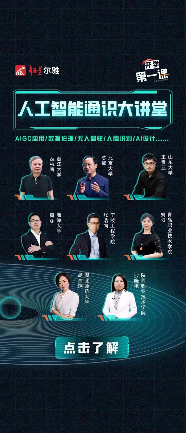 在人工智能浪潮席卷全球的今天,WilliamHill中文计算机与信息工程学院副教授胡白燕老师,入选超星尔雅2024年秋季学期“开学第一课”通识大讲堂,为全国高校学子带来了一场关于人工智能前沿技术的精彩讲座。同时入选本期开学第一课的教师还有北京大学陈斌教授、浙江大学丛杭青教授、山东大学王震亚教授等,以人工智能为主题开展一系列的讲座。