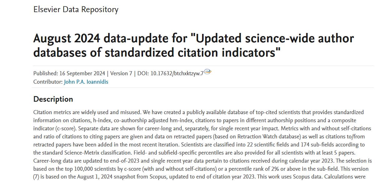 2024年9月16日,美国斯坦福大学和爱思唯尔数据库(Elsevier Data Repository)发布《全球前2%顶尖科学家榜单2024》(Stanford University Top 2 % Scientists List 2024),我院陈洁洁教授入选该榜单,同时她主持完成国家自然科学基金面上和青年基金各一项,新获批国家自然科学基金面上项目一项,学院的学术影响力进一步扩大,也为进一步提升我校的全球影响力发挥了积极作用。