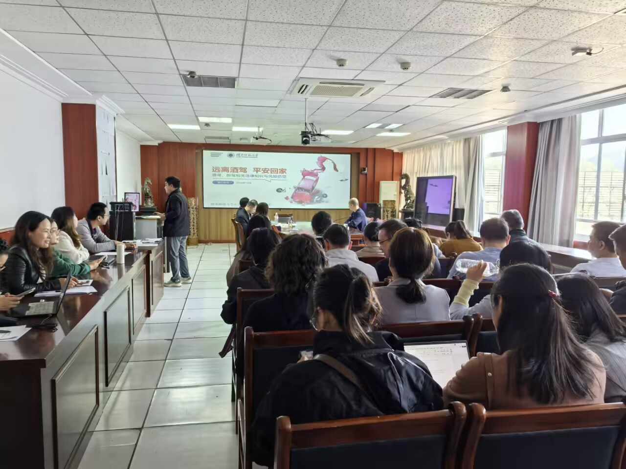 党委副书记刘健进行严禁酒驾、醉驾专题学习教育。他要求全体党员干部提高遵纪法守意识,深刻清晰认识酒驾醉驾危害;他以案说纪,利用身边的典型案例,要求全体党员经常对照检视;他强调学校将持续保持高压态势,对酒驾醉驾违纪违法等行为做到发现一起,严查一起,通报一起,绝不姑息。