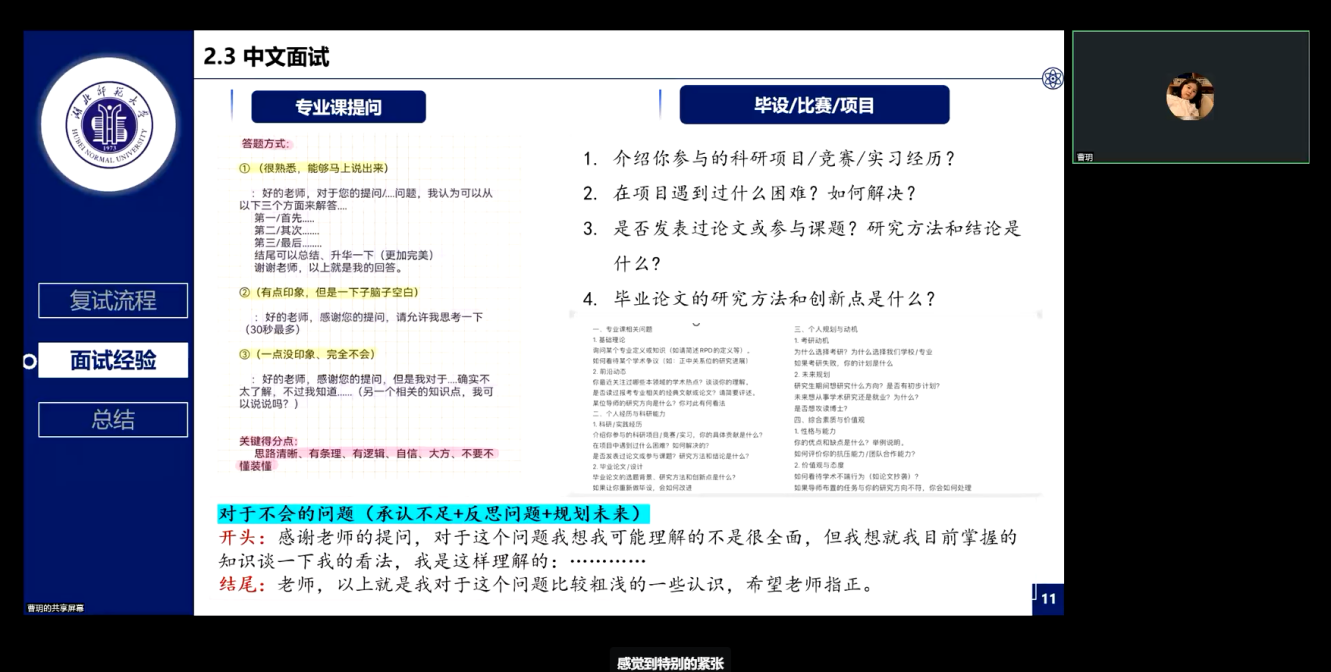 通过此次分享会,同学们不仅收获了丰富的考研面试经验和实用的备考技巧,更从她们的分享中汲取了信心和力量。相信在未来的考研面试中,大家定能凭借所学,从容应对,取得优异的成绩,考上理想院校,开启人生新的篇章。
