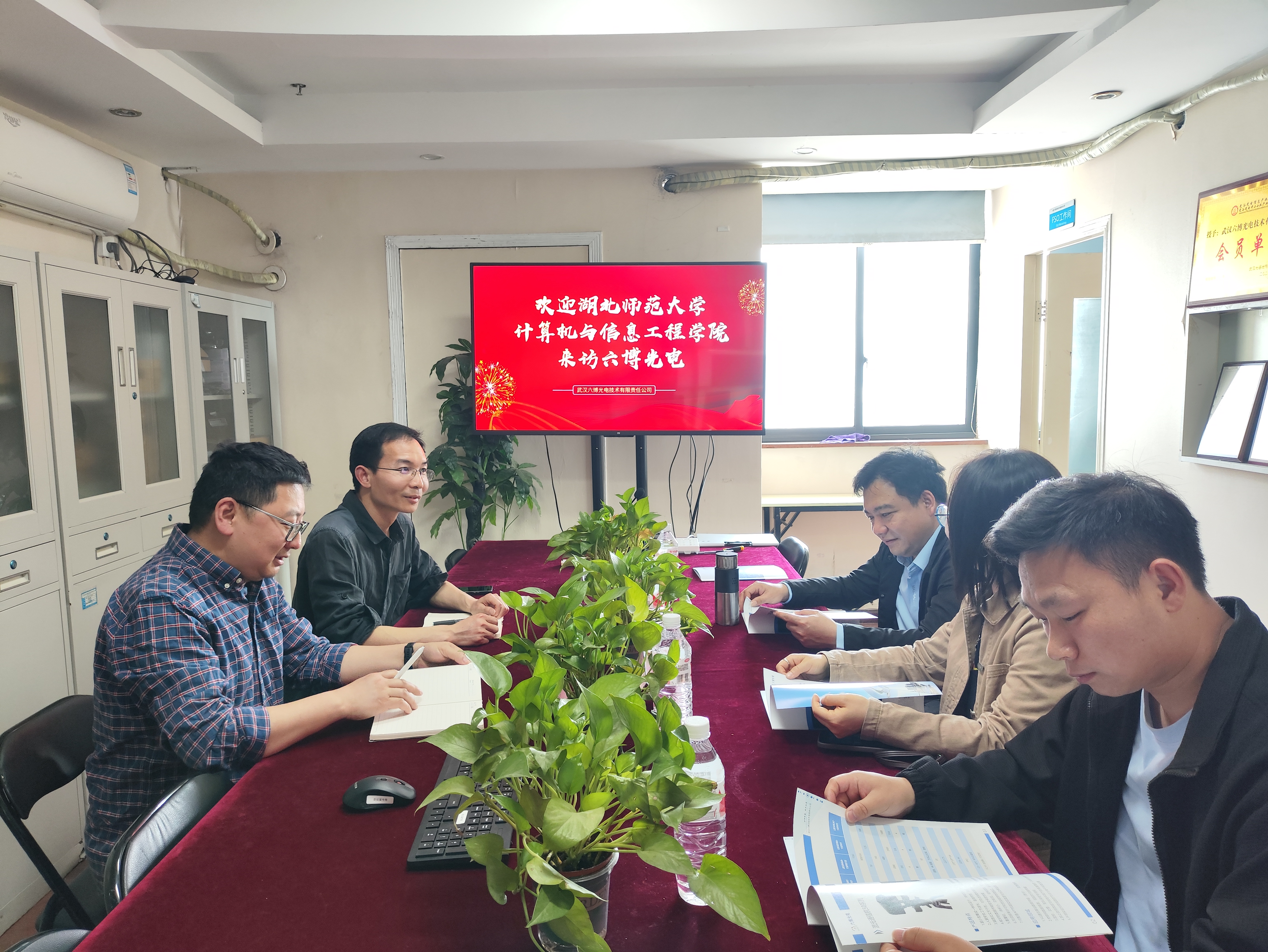在武汉六博光电技术有限责任公司,负责人介绍了公司发展情况、核心业务以及近年来我院在该单位工作、实习学生情况,湖北青三科技发展有限公司介绍了近期重点开展项目和未来合作领域,武汉长光科技有限公司负责人介绍了公司岗位需要并就学生专业技能证书获取提供宝贵意见,武汉易思达科技有限公司负责人对招聘要求、人才培养、校企合作等领域双方进行了深入交流。