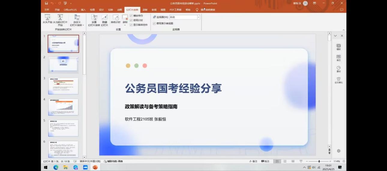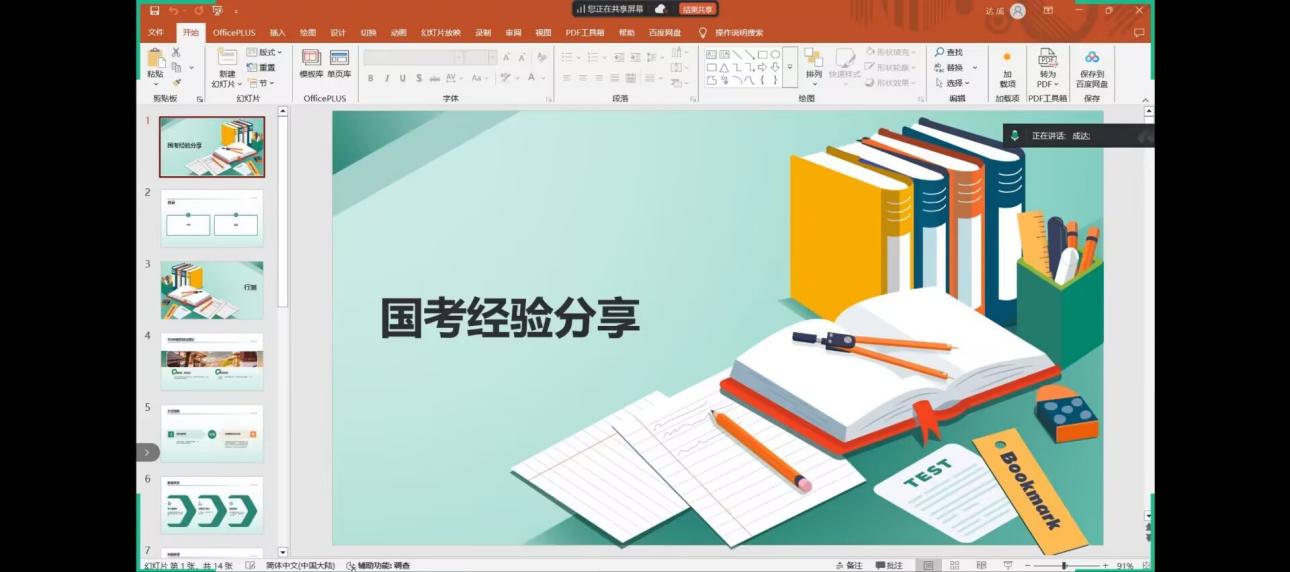 分享会伊始,主持人对到场同学表示热烈欢迎,并介绍分享会流程。随后,张毅恒分享了国考的限制、选岗以及考试内容,给大家提供了备考思路和方法;成达分享了国考的行测和面试的解题技巧,掌握不同题型的解题方法和思路,提高解题速度和准确率;周仡涵从备考计划、应试技巧、心态调整、面试经验四个方面进行全面分析。同学们学到了许多实用的备考方法和技巧,对未来的备考充满了信心,学院将一如既往为学生备考提供支持,积极牵线搭桥,帮助学生提高考公成功率。