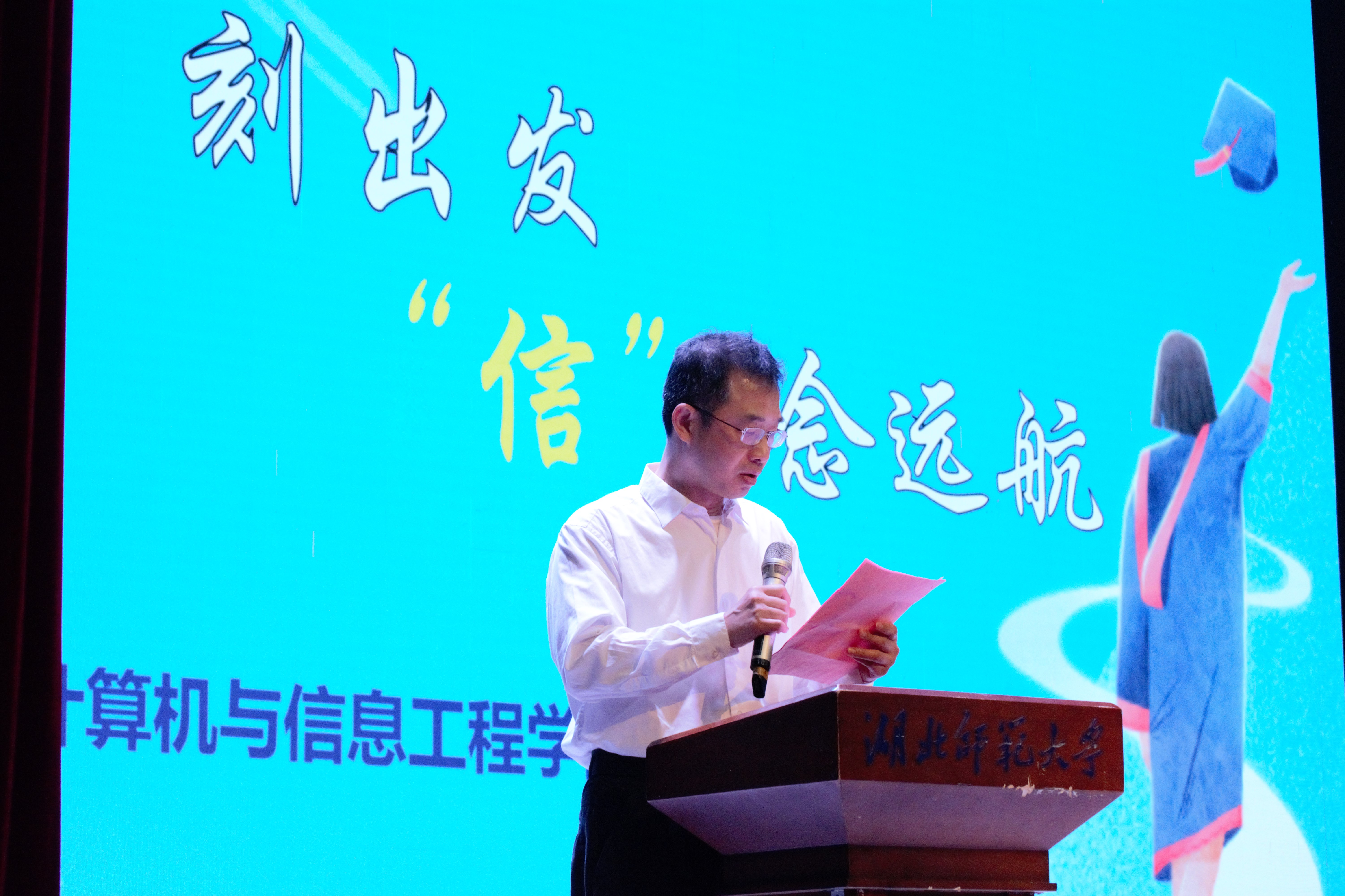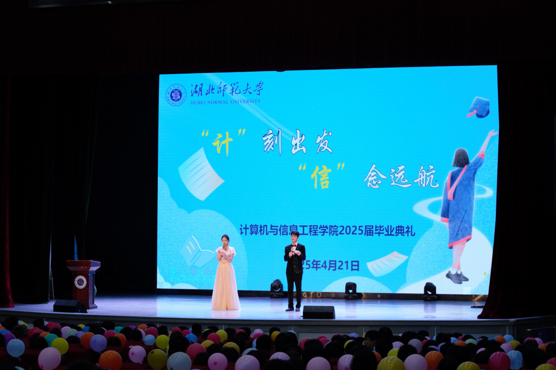 4月21日,我院在湖师大礼堂隆重举行了2025届毕业典。学院班子成员、系主任、21级班主任、全体辅导员等老师,校友嘉宾及全体2025届毕业生齐聚一堂,共同见证这一青春盛典。典礼以“‘计’刻出发,‘信’念远航”为主题,温情与欢庆交织的环节设计,为毕业生送上最深情的祝福。