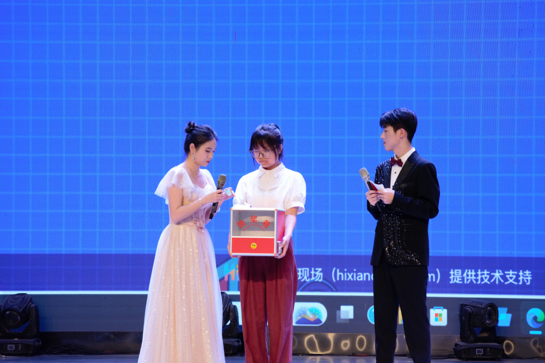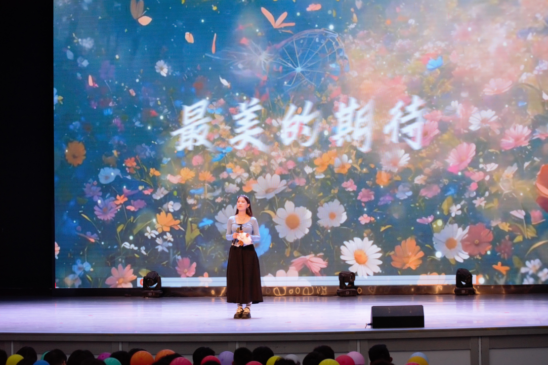 张杰芳学妹倾情献唱《最美的期待》,歌声中饱含对学长学姐的祝福。互动环节中,共读寄语与幸运抽奖穿插进行,现场笑声与欢呼不断。班主任老师现场为毕业生送祝福寄语,温情时刻令同学们眷恋动容。
