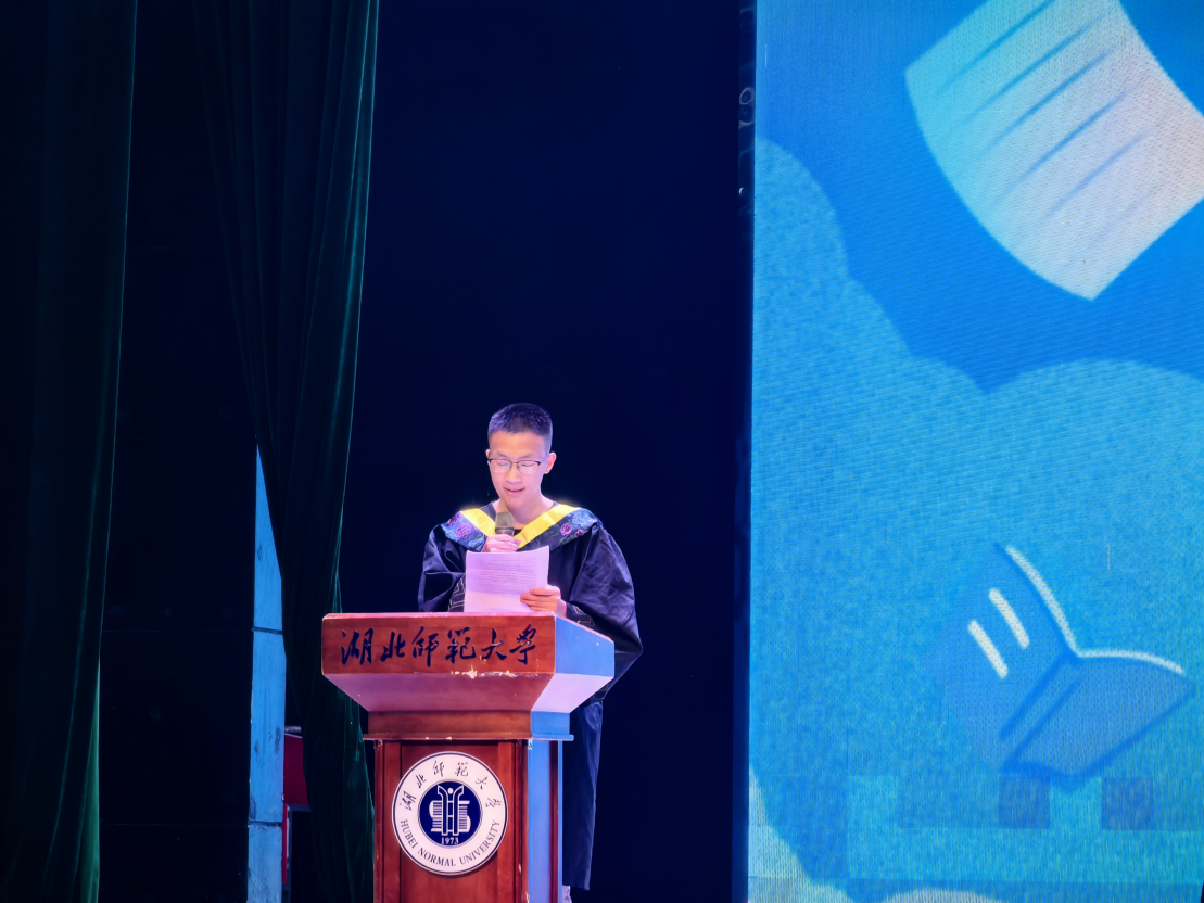 随后,典礼进入文艺表演环节。梁静、蔡婷、梁巍议、范恬静等4位学妹编跳的开场舞蹈《You and me》以动感的节奏和灵动的舞姿,展现了同学们的昂扬活力;毕业生代表周龙、张子龙依次登台发言,他们从专业学习、实践就业和同窗情谊等角度分享感悟,表达了对师长栽培的感激之情,并号召全体毕业生“带着青山湖畔最宝贵的青春记忆,从凤凰山出发继续奔赴人生的星辰大海”。