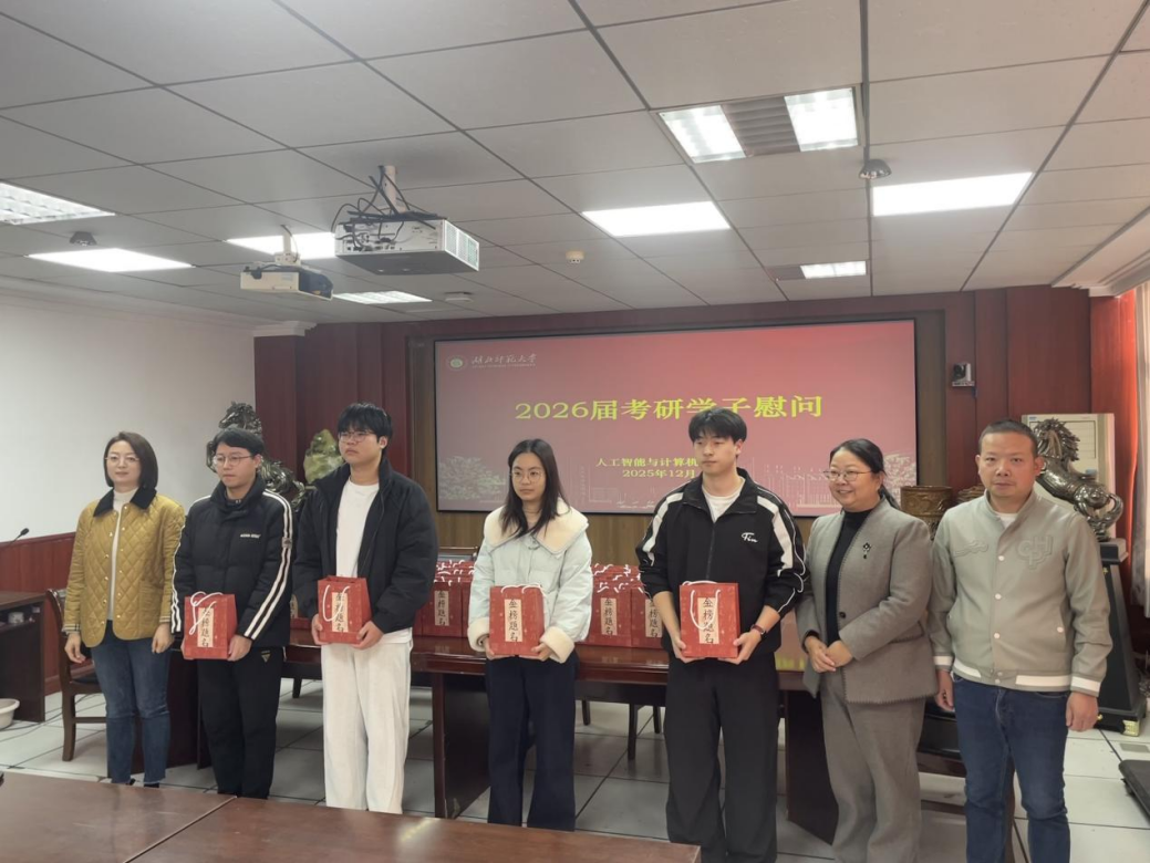 为进一步落实立德树人根本任务,体现学院对考研学子的深切关怀,鼓舞备考士气,缓解备考压力,12月11日上午,william威廉中文在教育大楼1715教室举办了2026届考研学子慰问活动。学院党委副书记付静、毕业班班主任柳隽宇、阮青劲等老师、2026届部分考研学子参加活动。年级辅导员卢梦主持活动。