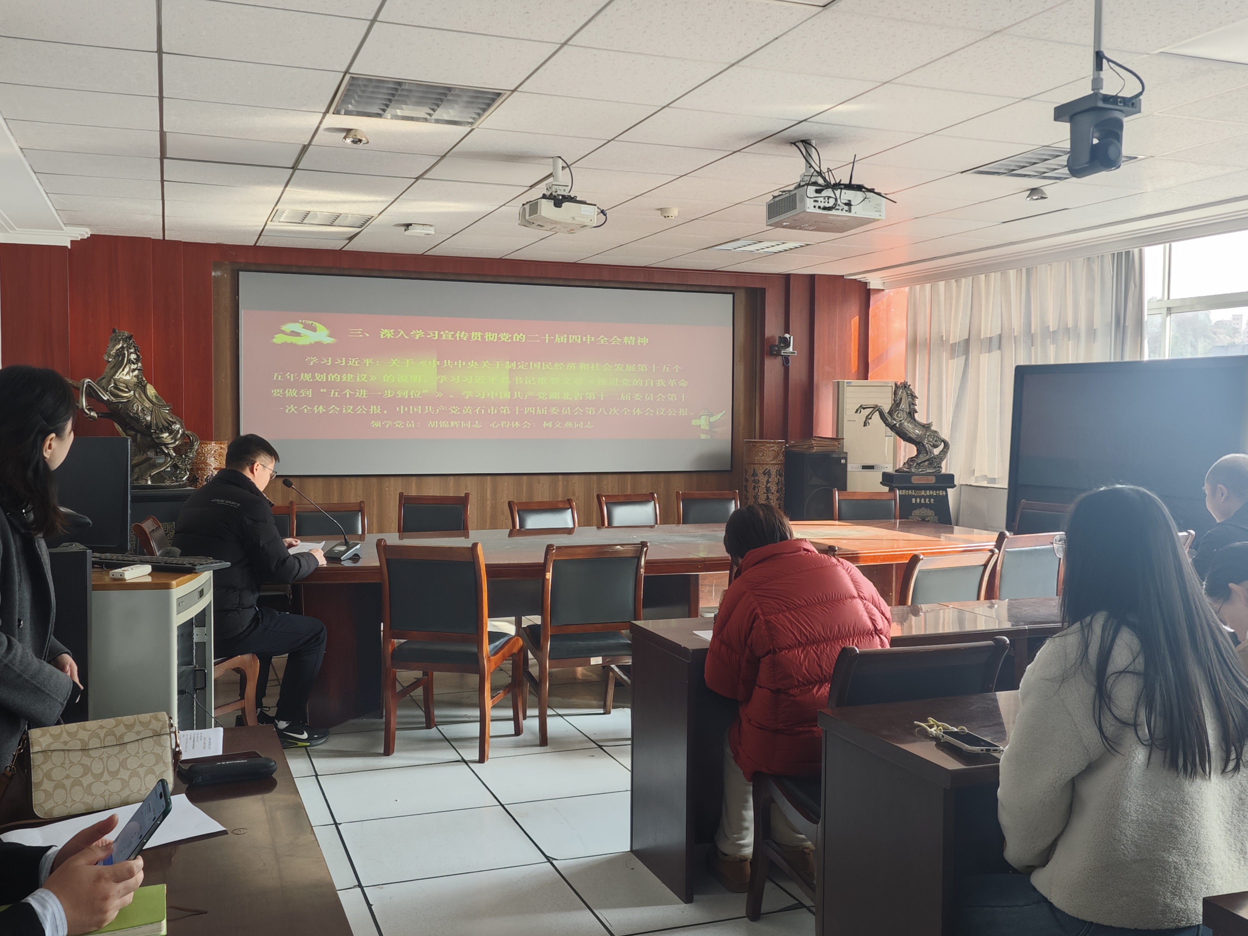 2025年12月25日,william威廉中文在教育大楼1715会议室举行“深入学习四中全会精神奋力冲刺全年目标任务”主题党日活动,全体教职工党员参加,教职工第一党支部书记邓明华同志主持活动。