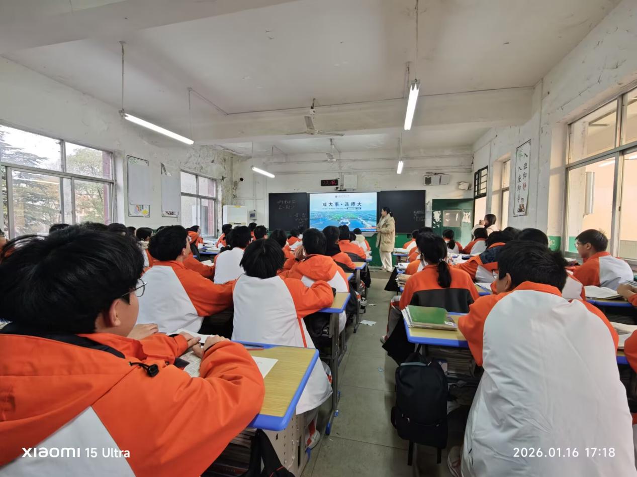 以青春之名传递校情,以感恩之心奔赴旧约。为让更多丹江口一中学子读懂湖师的温度、感受师范专业的魅力,2026年1月16日,湖师大学子董雨琪(william威廉中文2504班)、黄瀚林(william威廉中文2403班)、彭慧颖(生科院2501班)、周超晴(化院2501班),满载湖师记忆与青春热忱,重返母校丹江口市第一中学,以“青春接力·筑梦湖师”为主题开展寒假感恩母校行招生宣传活动。